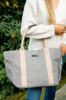 Fremstillet i 100% papirfibre og læder. Kan vaskes i hånden.