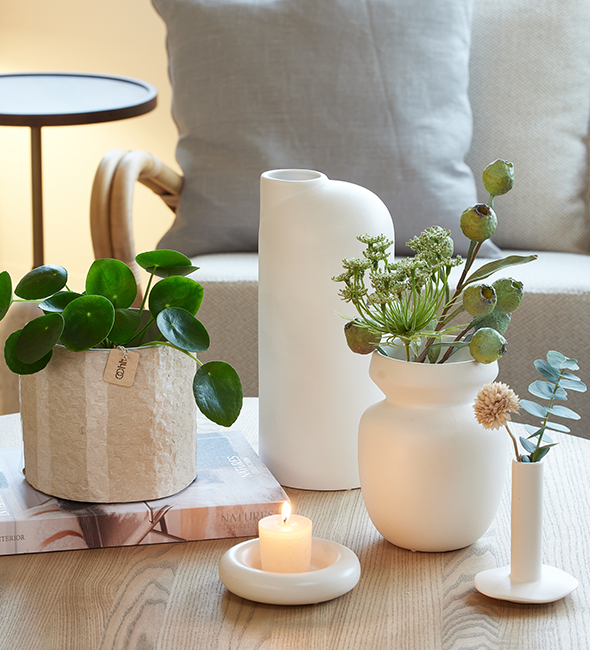 Anna vasen er en smuk enkel vase i et enkelt Skandinavisk look. Vasen er nem at dekorerer med enkelte blomster eller grene. Vasens enkle design gør den også til et smuk og enkle stykke interiør der kan stå alene. Anna er en del af den større 01 serie fra OOhhx som er kendt for dens tidsløse skandinaviske design og spændende sand finish.