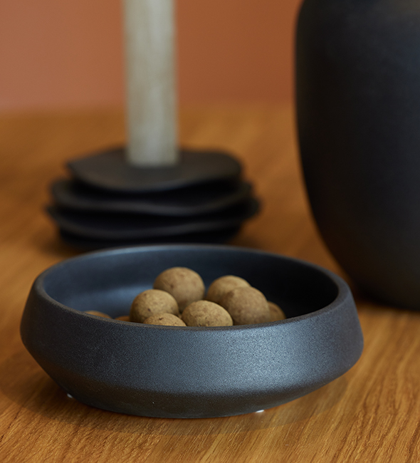 Ved at vælge et håndlavet produkt er du med til at beskytte vores miljø mod unødvendigt CO2-forbrug. Ligesom du vil opleve den ekstra værdi i et have en håndlavet unik vare. Alle keramiske produkter fra OOhhx Collection brændes ved brug af solenergi og med genbrug af vand fra produktionen. Hver produktion består af 30 % genbrugt keramik for at eliminere eget affald og reducere materialeforbruget. Keramik brændt med brug af solenergi og med genbrug af vand er et stærkt skridt mod bæredygtig boligindretning.