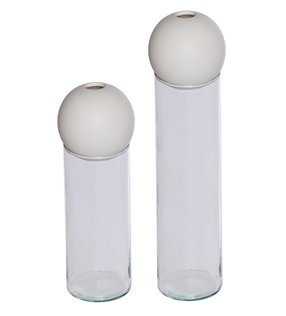 Blossom Ball placeres oven på vasen og har åbninger i top og bund, så blomster kan stikkes igennem og arrangeres på en let og legende måde. Sammen forvandler de vasen til et kreativt blikfang - perfekt til både enkle grene, friske blomster eller mere kreative opstillinger.