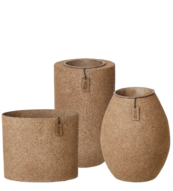 XL sættet byder på 3 spændende designs, som supplerer hinanden flot eller kan bruges hver for sig. De 2 høje designs udskiller ved deres nytænkende design. Øverst finder du en potte indsats, som er beklædt med naturlig latex indvendig så den er vandtæt. De 2 høje designs fungerer derfor som potteskjulere og ikke vaser, som man ville tro.