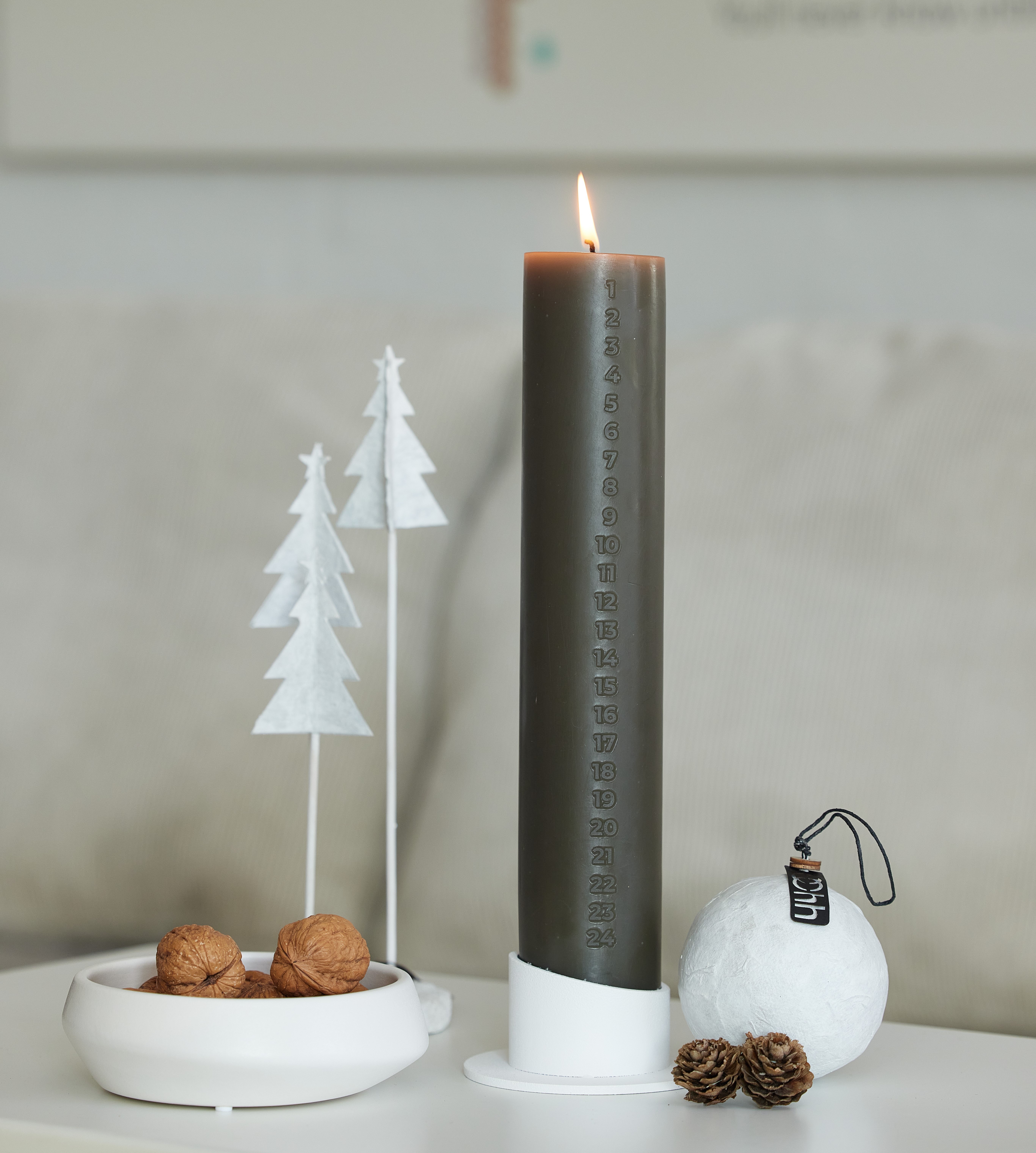 Kalenderlys: D5 x H30cm + Lysestage: D9,5 x H4 cm