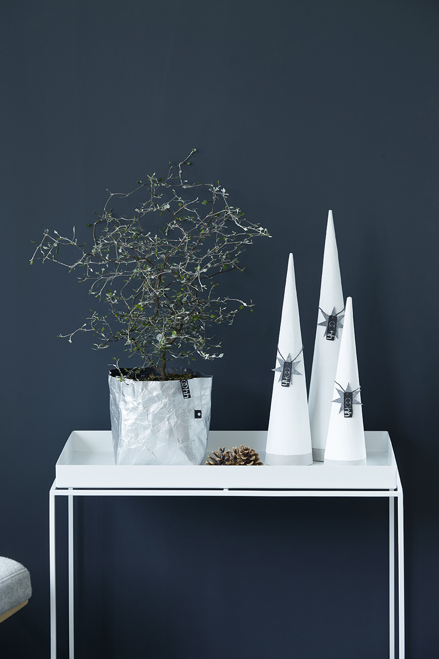 Materialet er genbrugspapir. Ecofelt stjernen er aftagelig og keglerne kan derfor bruges hele året rundt.