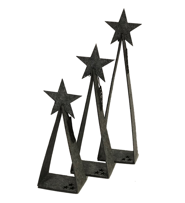 Er der noget bedre end julehygge i hjemmet? Bring julestemningen og roen ind i dit hjem og lad fantasien få frit løb med et smukt triangel formet juletræ med udskåret stjerne mønster indvendigt i eco-felt. Eco-felt fremstilles af genbrugte plastikflasker og plastikflasker, som omsmeltes og omdannes til den flotte og dekorative eco-felt.
