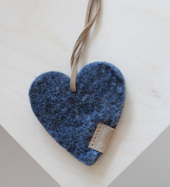 Hjerte ornament af Zero Waste uld, Blue