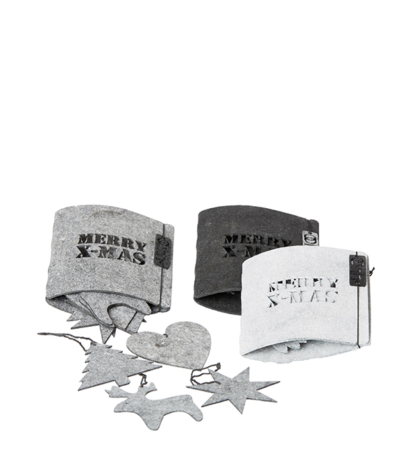 Eco-felt kurvert med 8 styk julepynt, Grey