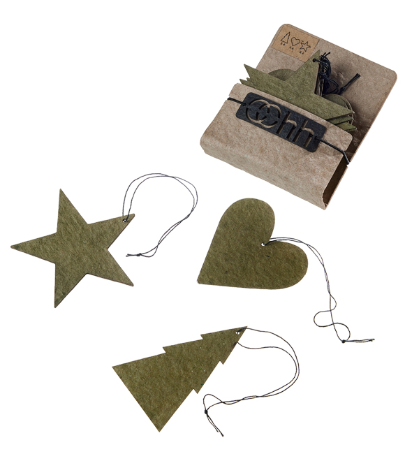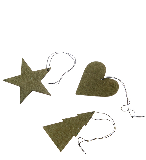 Du kan med stor fordel kombinerer disse små ornamenter med meget af OOhh’s anden julepynt fra såvel pulp serien samt kollektionerne zero waste paper, genbrugspapir, ecofelt med mere.