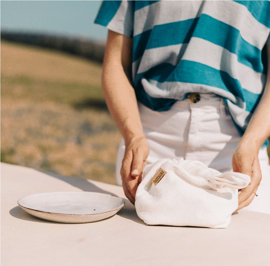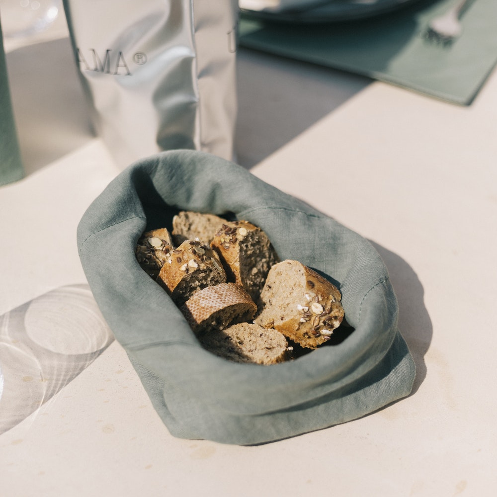 Denne brødpose er lavet af italiensk hør og tilføjer en stilfuld dimension til dit bord, samtidig med at den opbevarer rundstykker, wienerbrød og brød. Fiocco-posen er også funktionel og praktisk til opbevaring af mad i køleskabet, såsom ost, frugt eller grøntsager. Brug den som en madkasse til kontoret, til parken eller til stranden. Tasken fungerer også godt til at holde brødet friskt i længere tid. Dit brød har brug for at kunne ånde, da det naturligt har et højt fugtindhold. Hvis det opbevares i en tæt lukket beholder, vil det snart blive muggent, men en hørbrødpose hjælper med at forhindre dette. Den er vaskbar og genanvendelig. Fold toppen af brødtasken ned for at lave en smuk kurv, perfekt til servering af brød og rundstykker ved bordet. Lav en knude for at lukke tasken og holde brødet friskt.