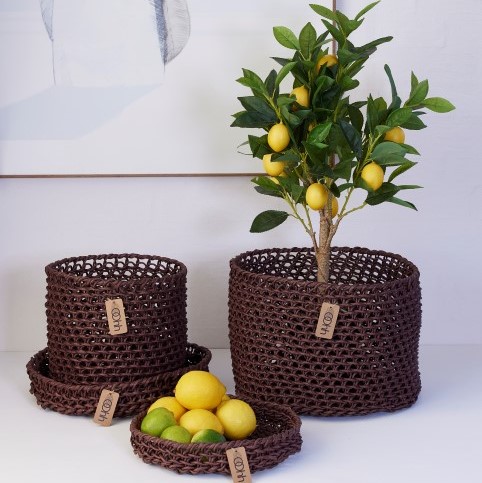 Dekorative bakker til opbevaring af diverse ting. 3 størrelser med masser af anvendelsesmuligheder. Brug dem evt. til brødkurve, frugtfad, garn, magasiner m.m. Bakkernes væve teknik og den kraftige papirkvalitet giver dig en garanti for en stærk og stabil bakke.