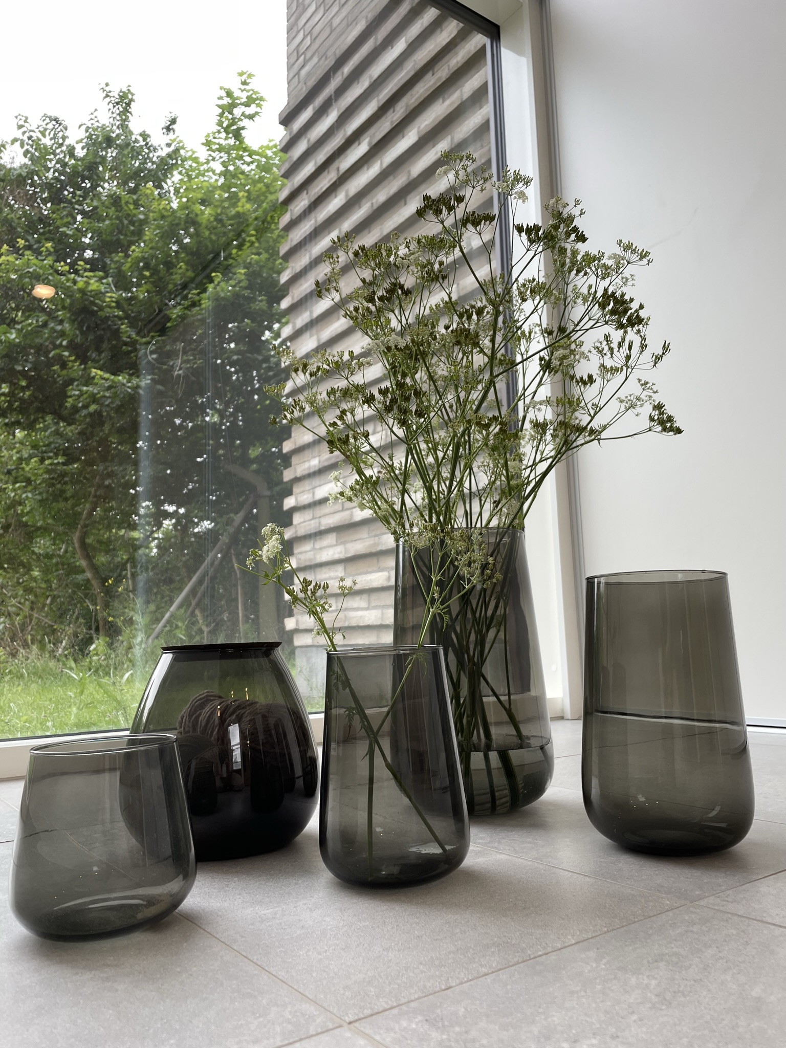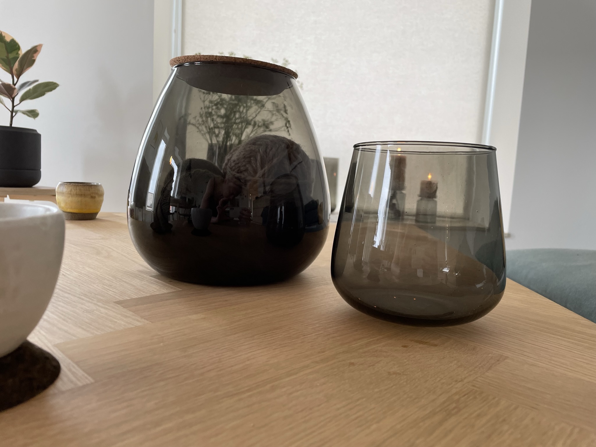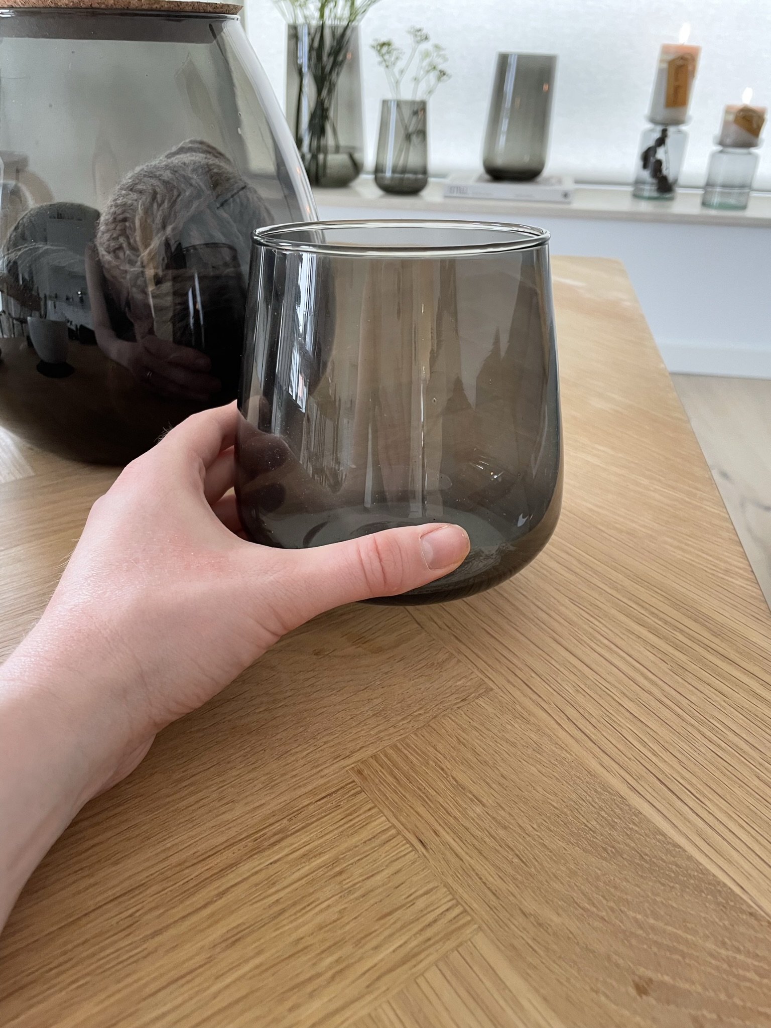 Ved at vælge et håndlavet produkt er du med til at beskytte miljøet for store energibesparelser og samtidig for du et smukt unikt produkt. Genbrugsglas har den unikke egenskab at glas kan genbruges igen og igen uden at miste dets oprindelige kvalitet. Alle produkter i OOhhx glas kollektionen er fremstillet i genbrugsglas og er enten håndlavet eller mundblæst. På grund af risiko for farveændring på farvet genbrugsglas anbefaler vi ikke maskine opvask.